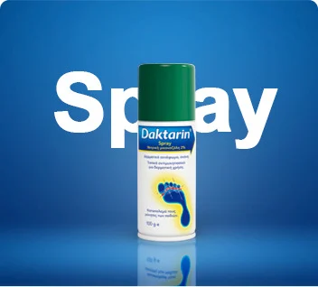 Το Daktarin® Spray αντιμετωπίζει τη μυκητίαση των ποδιών. Επίσης, είναι ιδανικό για χρήση σε κάλτσες και παπούτσια προλαμβάνοντας την επαναμόλυνση των ποδιών.
